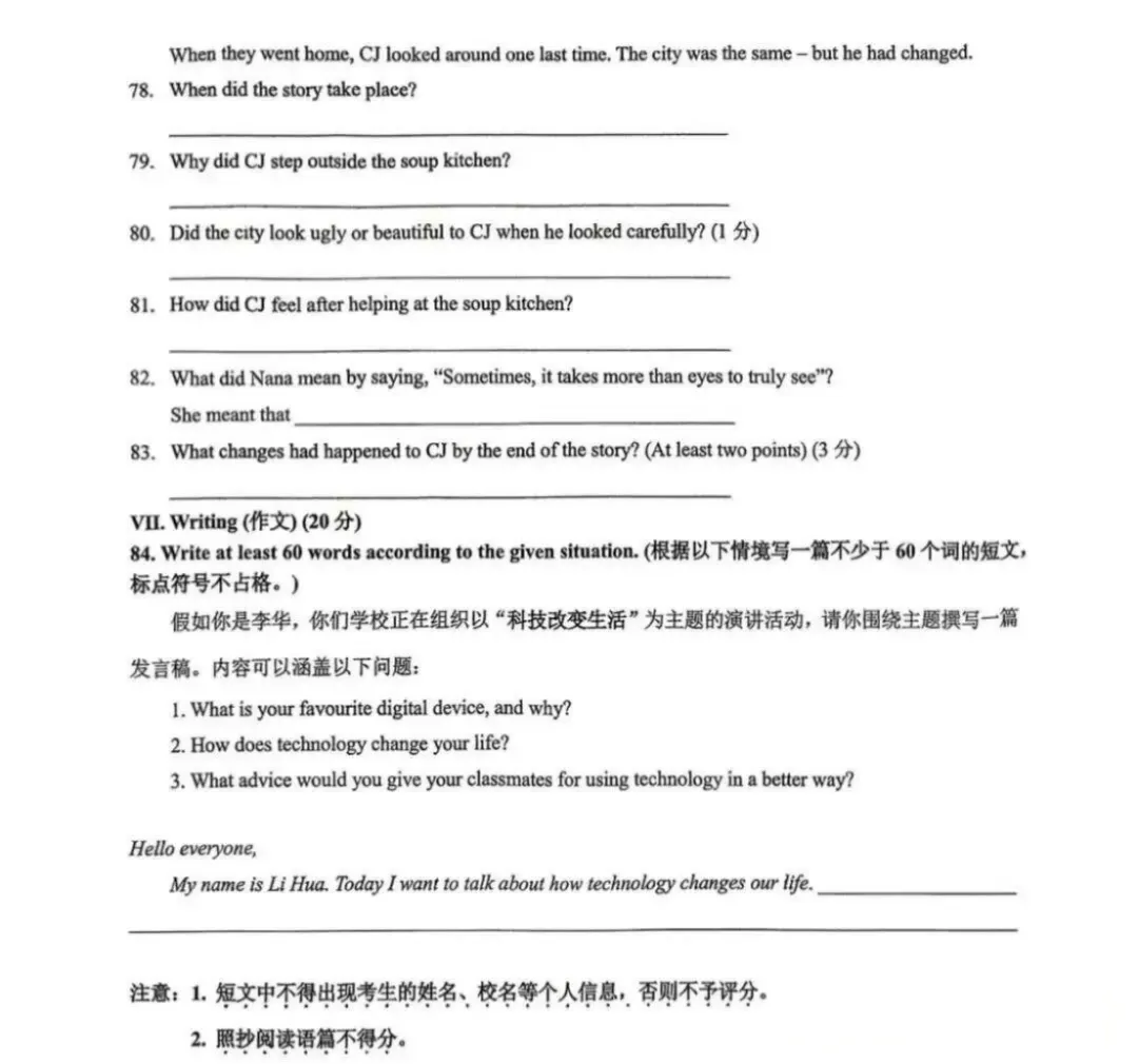 VII. Writing(20分)