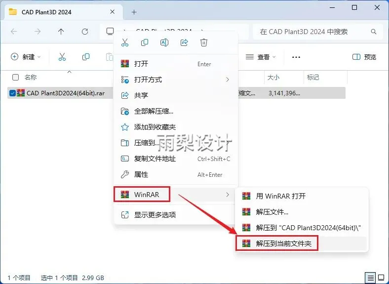 1.右键【下载的安装包】选择【解压当前文件夹】