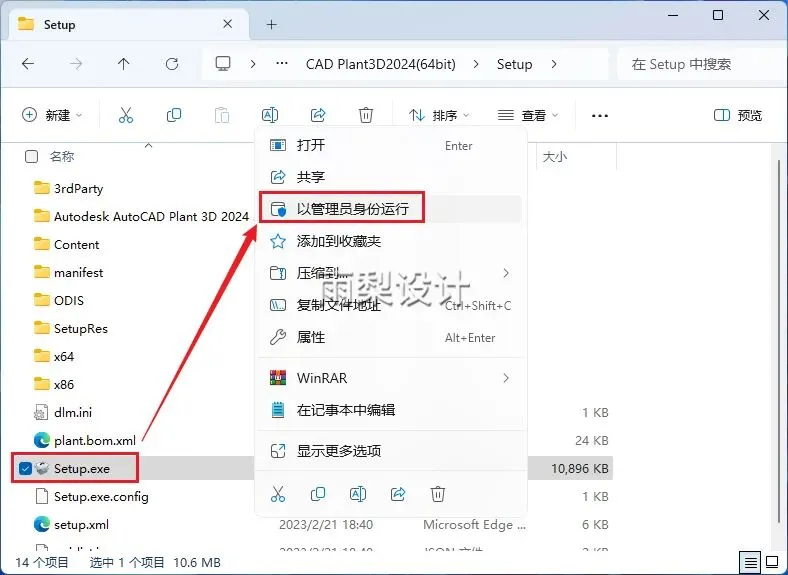 3.右键【Setup.exe】选择【以管理员身份运行】