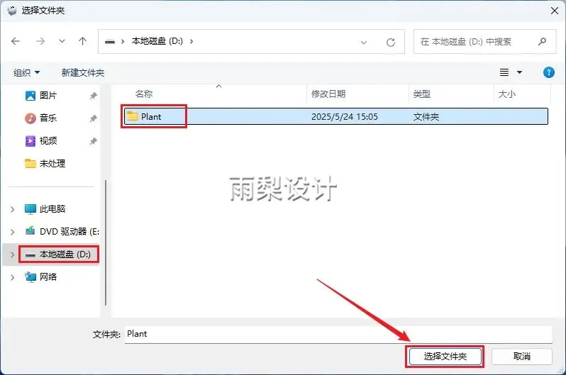 6.选择【D盘】,新建文件夹(名称不能是中文),点击【选择文件夹】