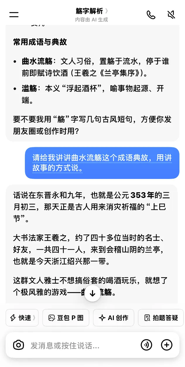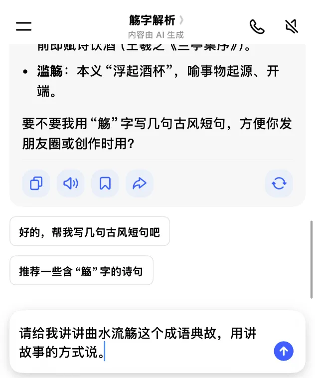 AI便会为您生成一个简短有趣的小故事,生动还原历史场景,让您轻松理解典故背后的文化内涵。
