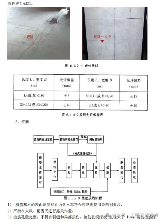 基层清理→墙体放线→设置拉墙筋→制备砂浆→砌块排列→砌块浇水湿润→铺砂浆→砌块就位→校正→砌筑→竖缝灌砂浆→勾缝→验收。