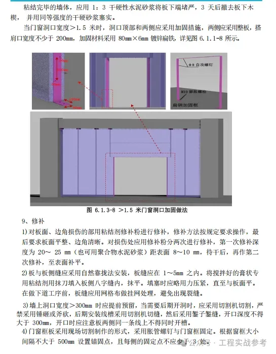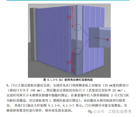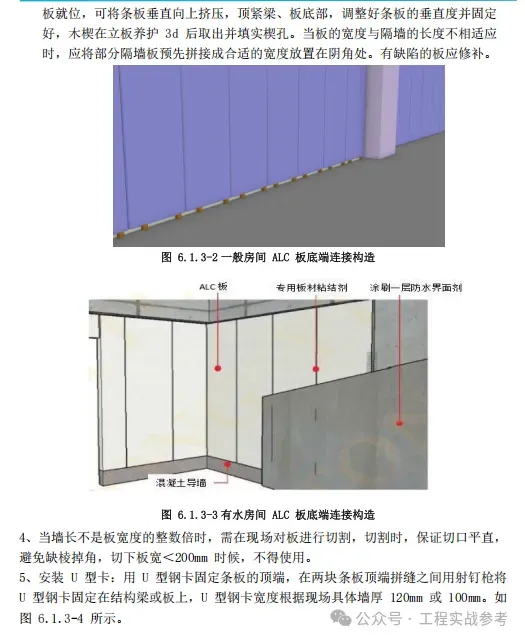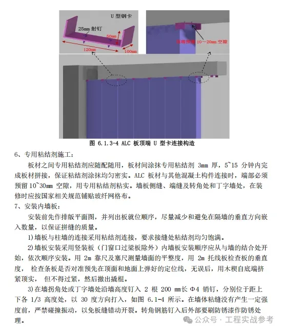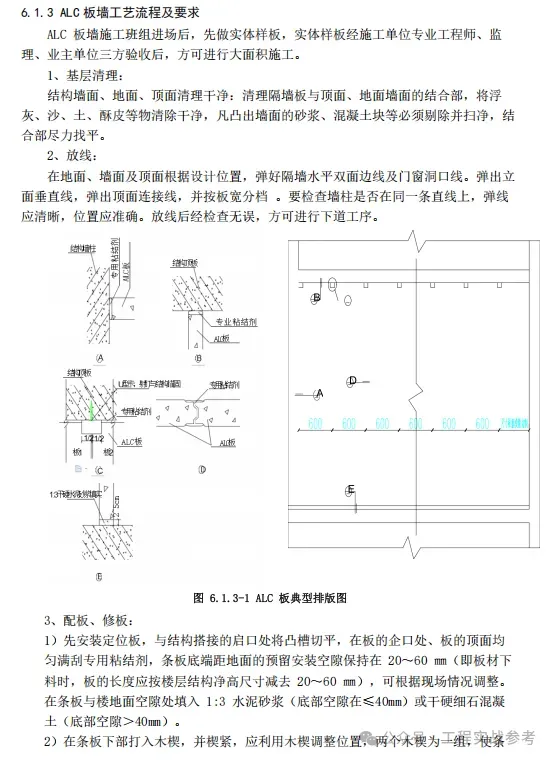 蒸压轻质加气混凝土板,简称 ALC板。施工工艺流程为: