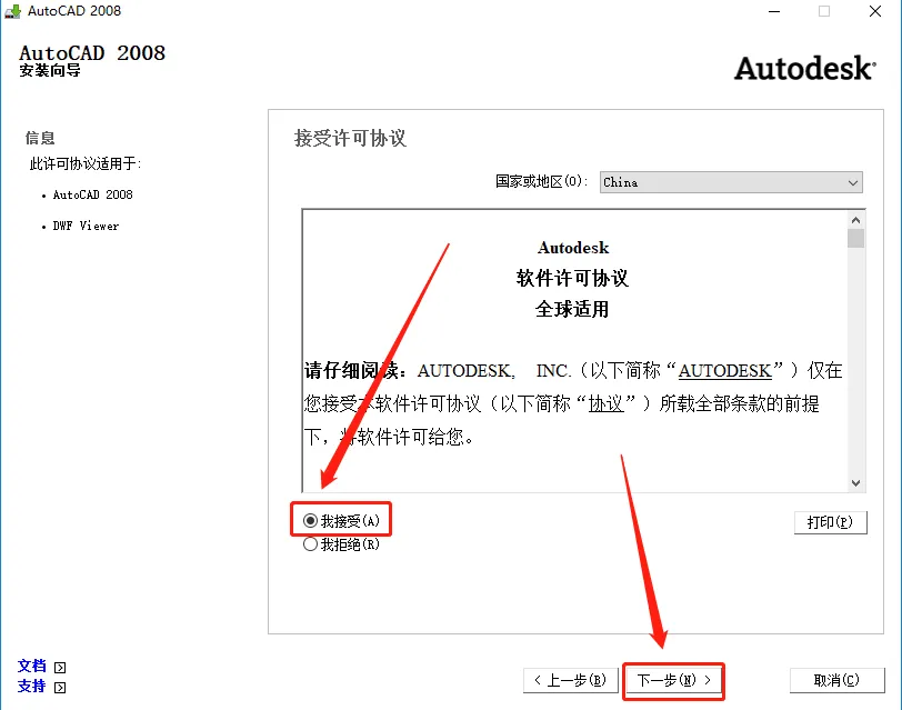 8.选择【我接受】,然后点击【下一步】。