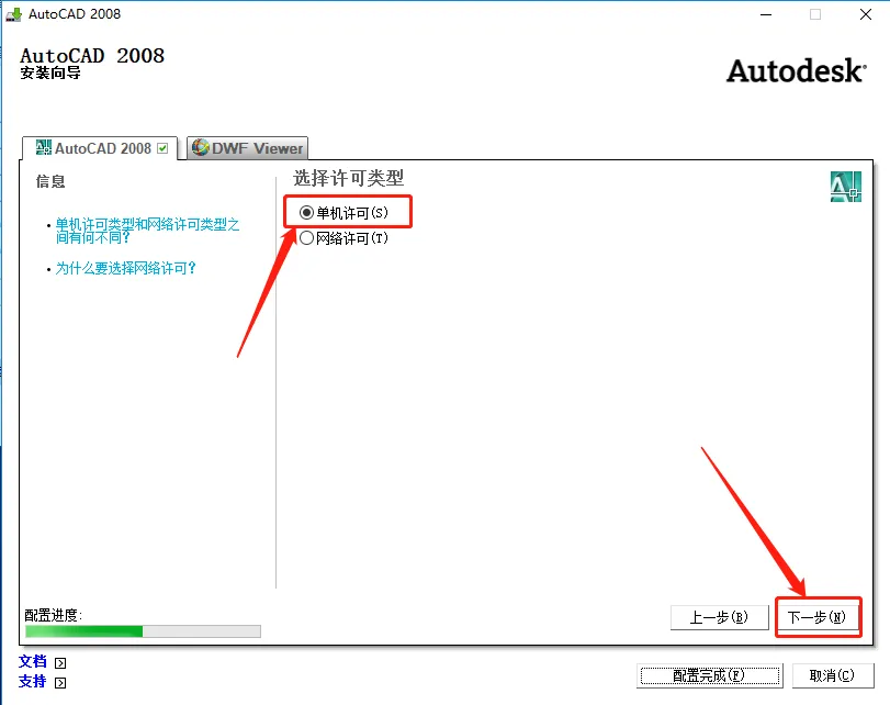 12.选择【单机许可】,然后点击【下一步】。