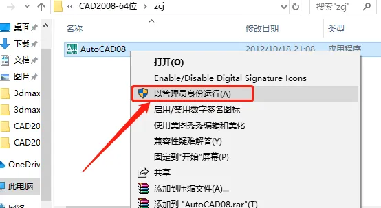 22.鼠标右击AutoCAD08注册机,选择【以管理员身份运行】。