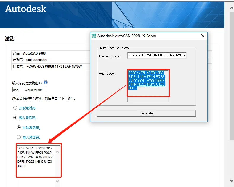 24.接下来使用【Ctrl+C】快捷键复制Auth code方框中生成的激活码,然后使用【Ctrl+V】快捷键粘贴至软件的激活码处。