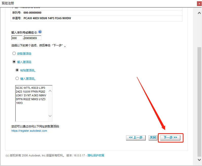 25.粘贴好激活码后点击【下一步】。