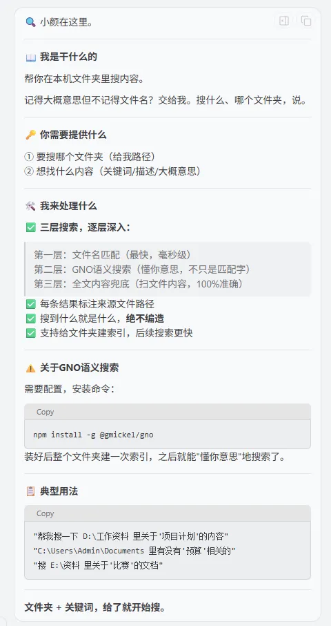 手把手教你用“小颜”龙虾:本地文档太多找不到?问它就对了!