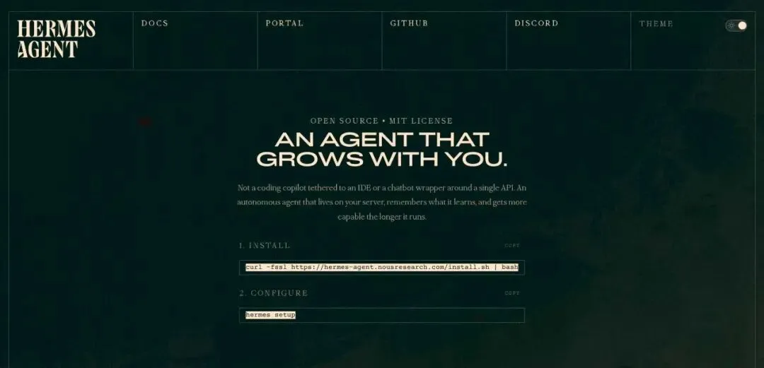 Hermes Agent(赫尔墨斯智能体)官网图片