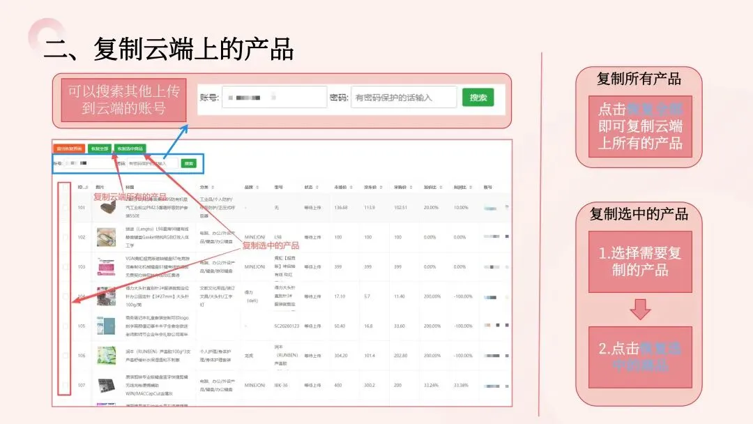 产品库共享:一次采集,多店复用。一个账号采集后,其它店铺可直接复制上传,无需重复采集。