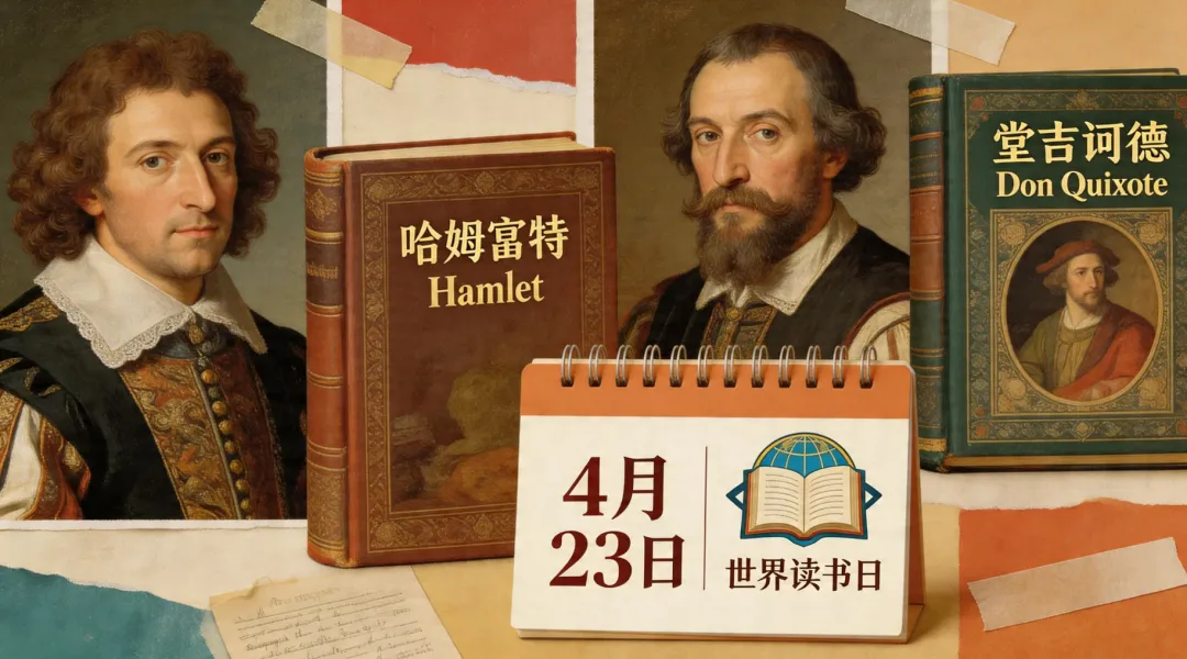 两个人不在同一个国家,死亡原因也不一样,但死亡日期撞在了同一天——历法换算后是这样。一个写了《哈姆雷特》《李尔王》,一个写了《堂吉诃德》。后来UNESCO决定把这一天定为”世界读书日”,逻辑是:如果你在一天之内可以同时悼念这两个人,那这一天就值得停下来读本书。