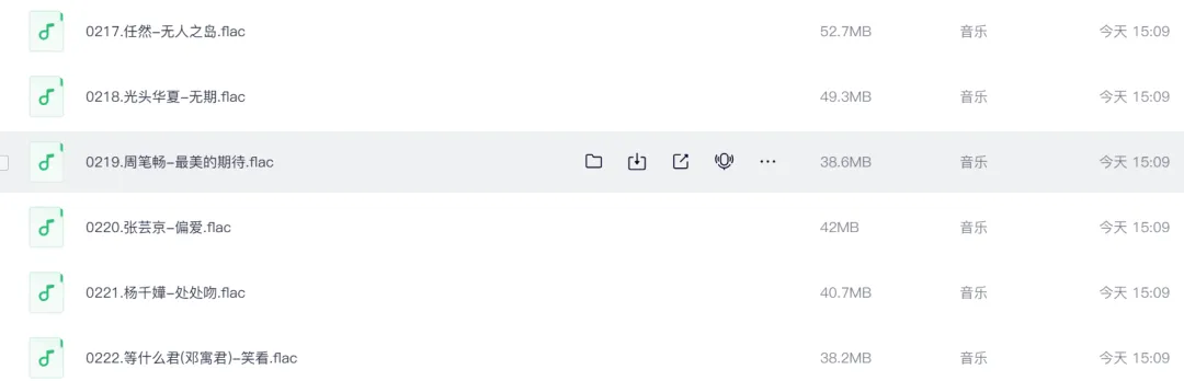 之后我要是再收集到更多好听的无损音乐,也会继续整理出来分享给大家。也希望大家能一起守住这份简单的分享初心,拿到资源的朋友,也可以转给身边同样爱音乐的小伙伴,好歌一起听,快乐才更长久。