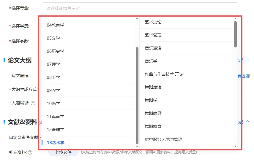 ※可以免费创作大纲,支持按照自有大纲去生成,还支持按照开题报告去生成。