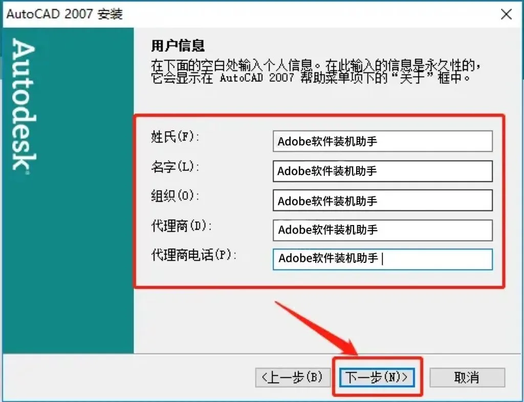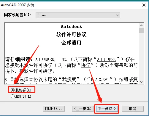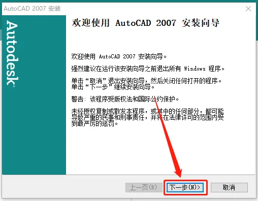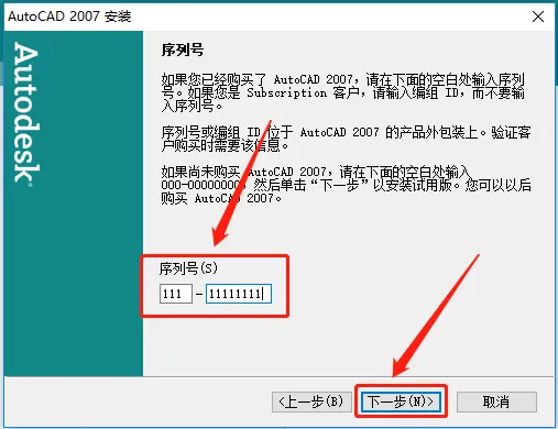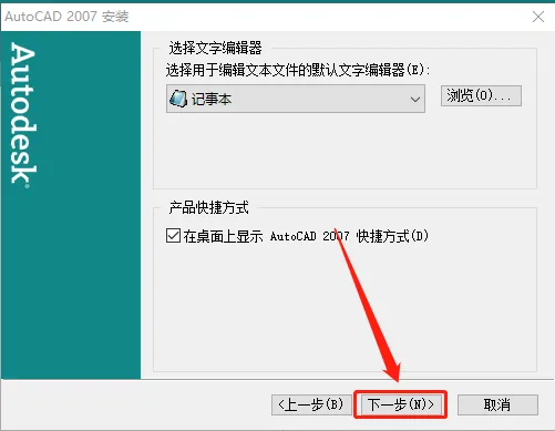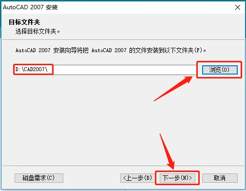 13.点击【浏览】设置软件的安装路径,不建议安装路径为C盘,我这里选择安装到D盘,并在D盘创建了一个名为CAD2007的文件夹,设置好安装路径后点击【下一步】。