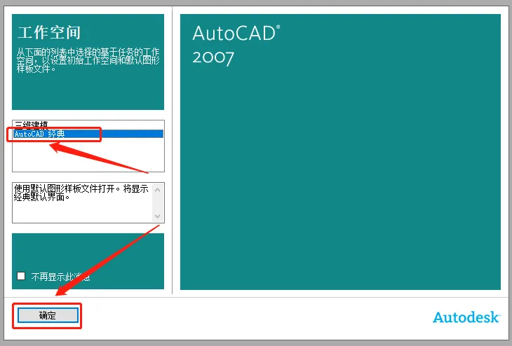 20.初学者建议选择AutoCAD经典,然后点击【确定】。