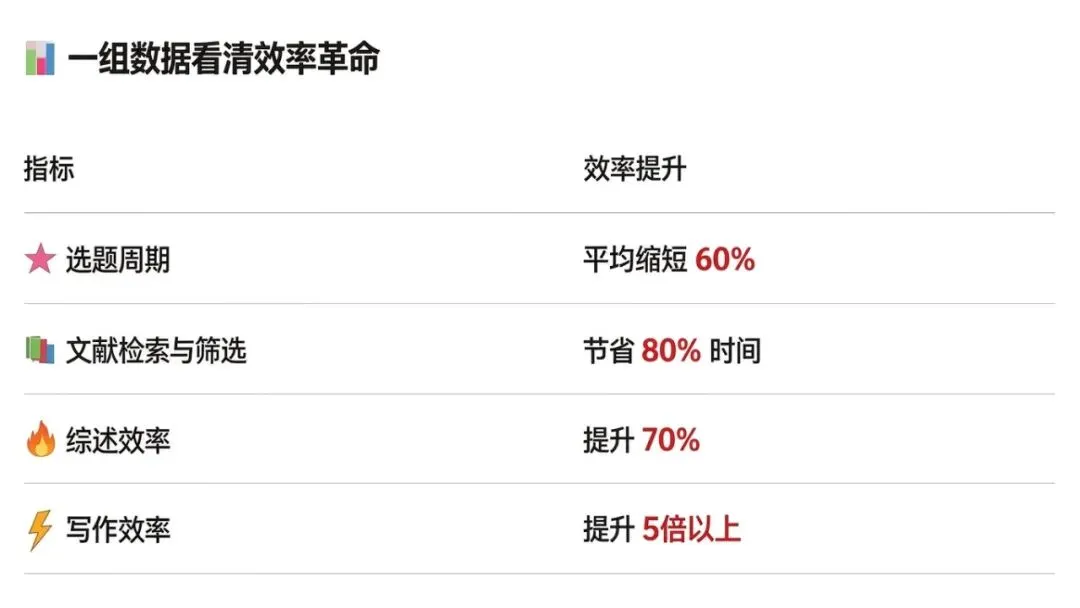 原来需要两周苦苦思索的开题报告,现在3天就能成型;再也不用在多个平台之间低效切换检索。