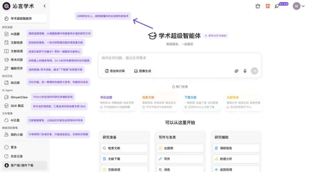 现在,打开沁言学术,把你今天要做科研交给它。