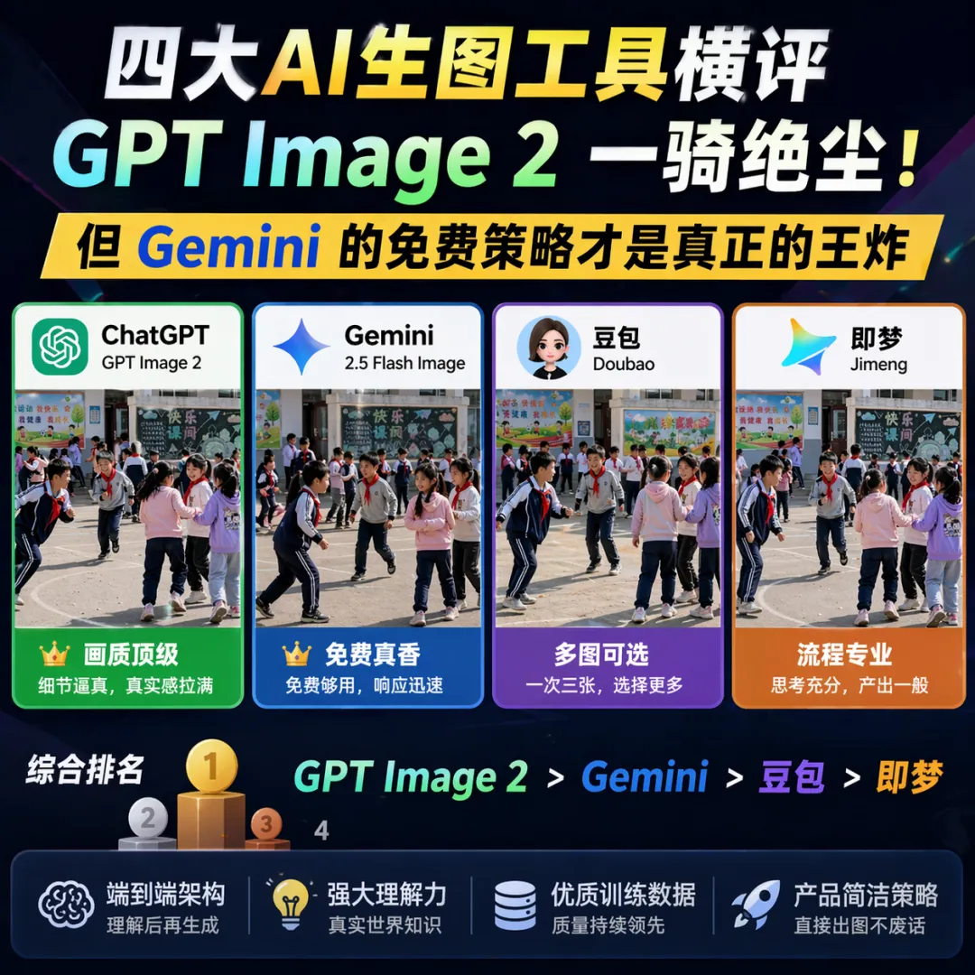 四大AI生图工具横评:GPT Image 2 一骑绝尘!但Gemini的免费策略才是真正的王炸