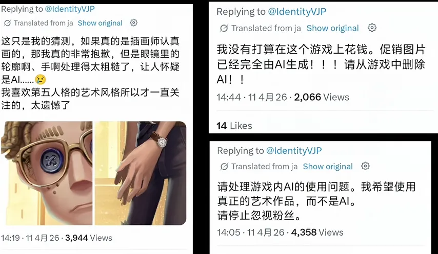 “第五人格的特殊之处在于,许多玩家最初是被其画风和角色塑造吸引入坑的。与那些以游戏机制或策略为核心卖点的游戏不同,《第五人格》的重心在于视觉表达,所以在视觉表达上用AI偷懒,会更加不可饶恕。”