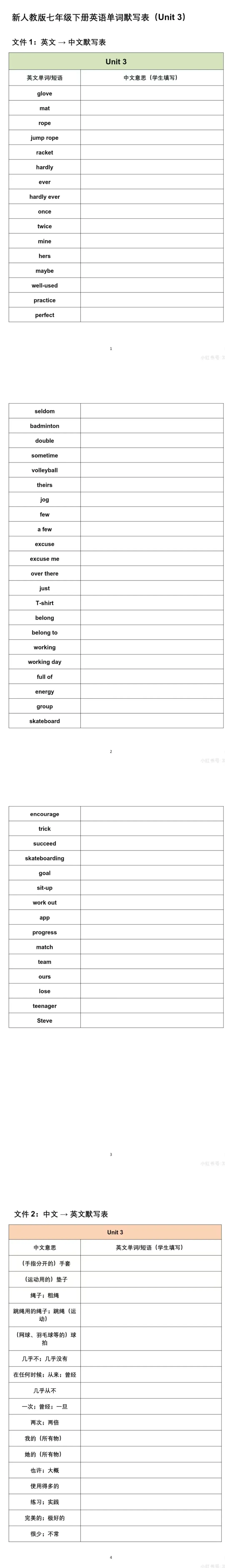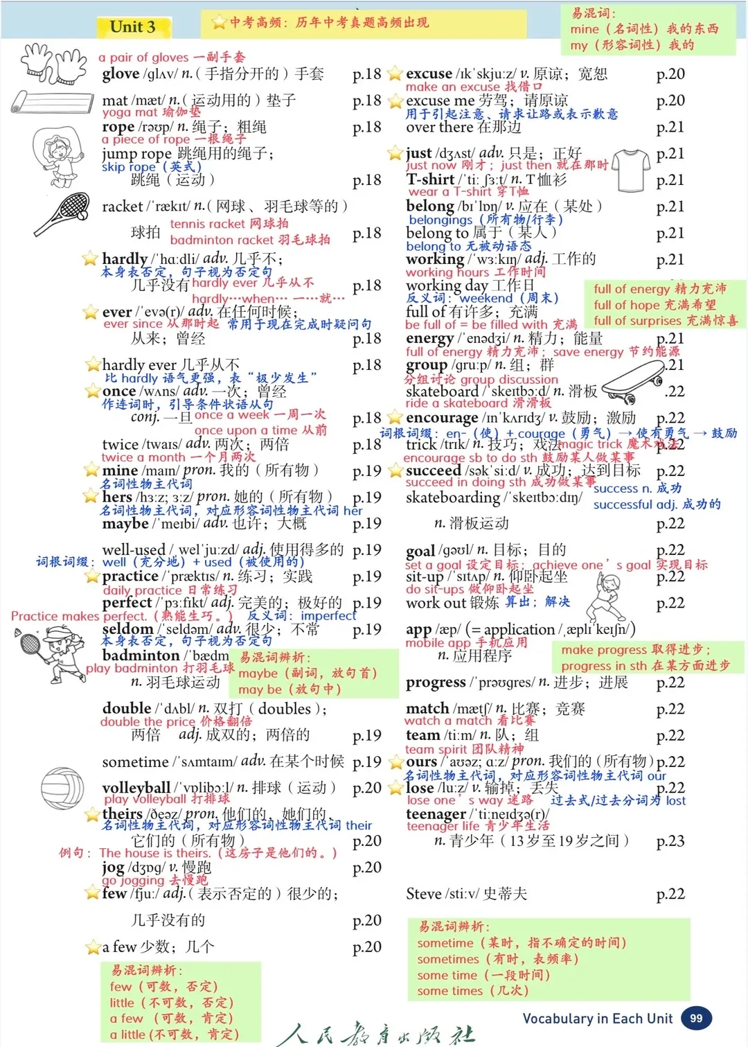 2026初中英语新目标人教版七年级下册电子课本单词表解析笔记(免费下载打印版)