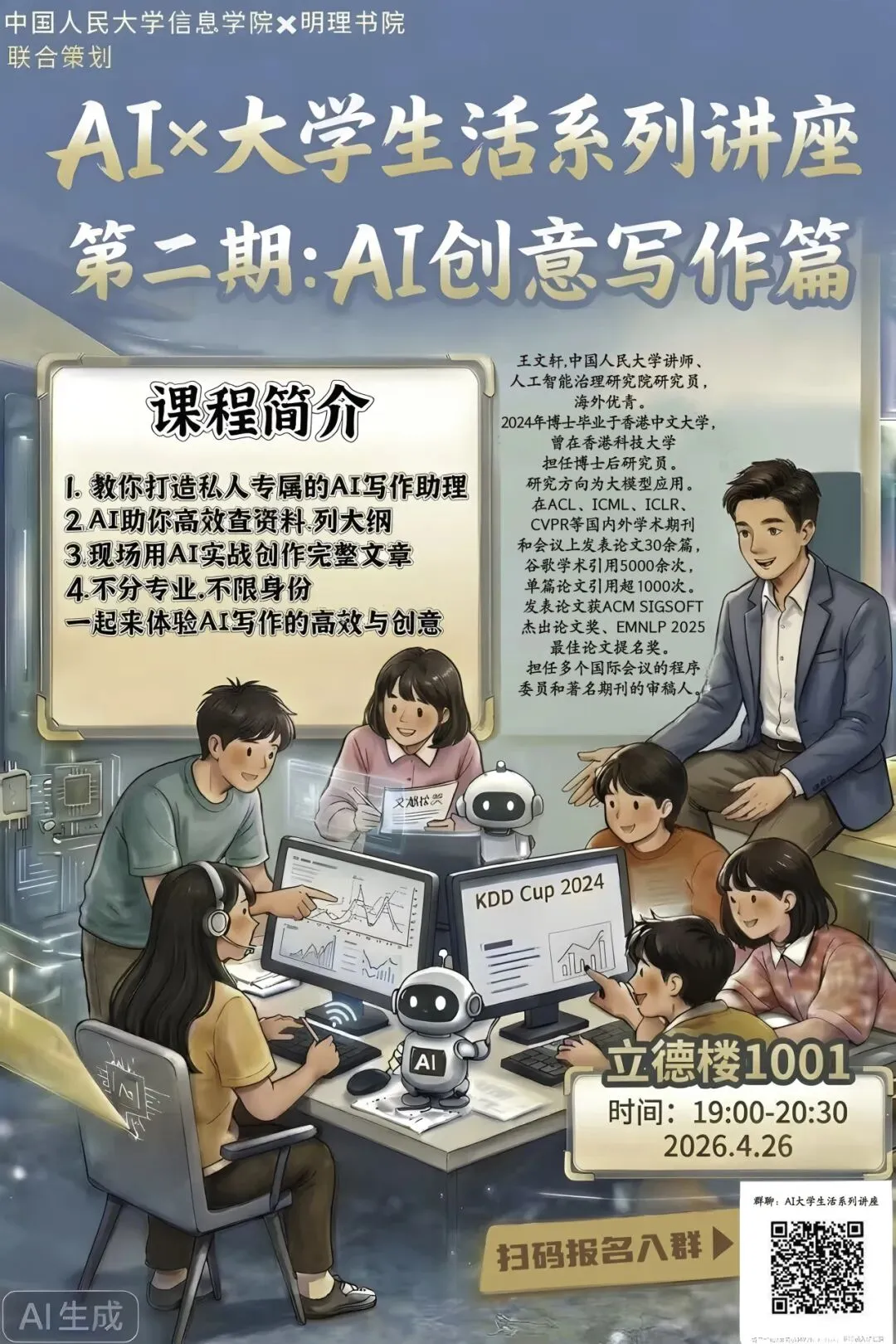 在这个AI时代,写作不再是孤军奋战!本次“AI × 大学生活之创意写作篇”讲座,将带你解锁人工智能时代的全新创作姿势。我们将以“完成一篇爆款科普文章”为主线,手把手教你如何将AI打造成你的私人专属“创作助理”!