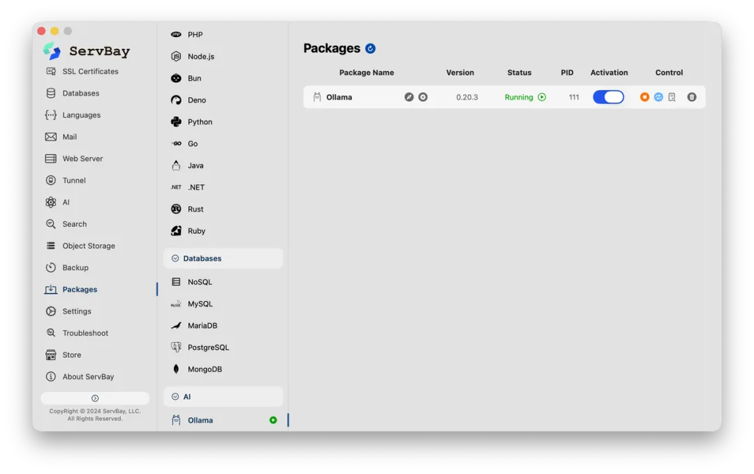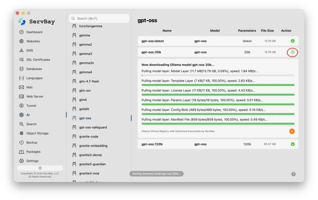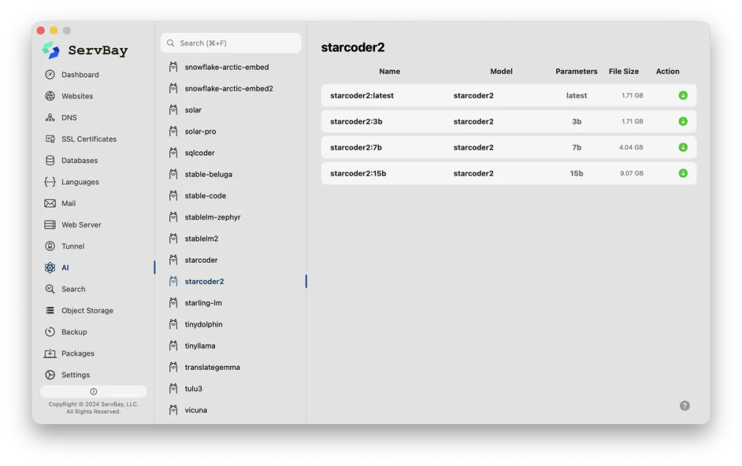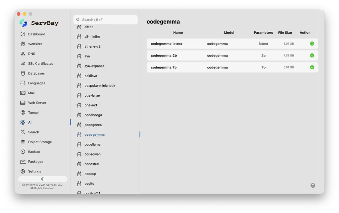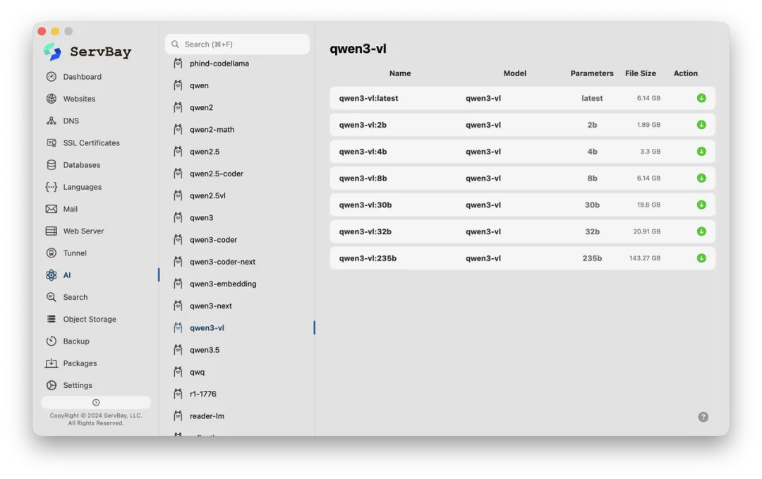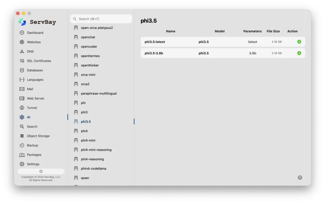 最方便当然是通过 ServBay 来安装,ServBay 支持很多本地大模型。