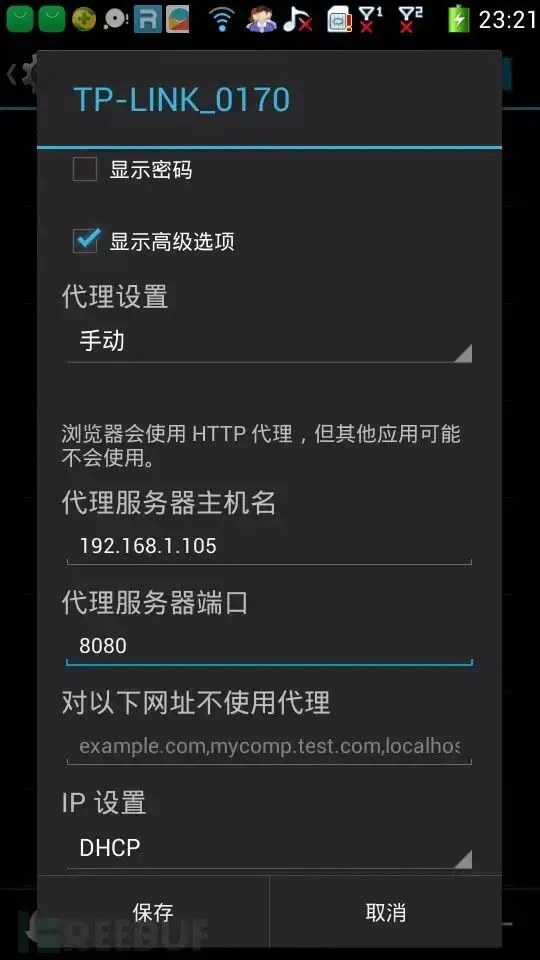 代理服务器主机名填你电脑的IP地址,端口填Burp Suite里设置的那个端口(比如8080),保存。