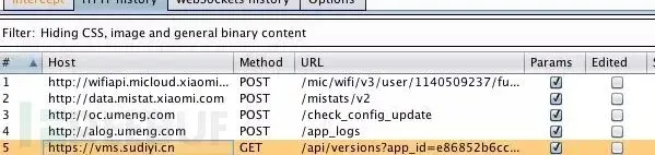 设置好之后,手机的所有网络流量就会经过Burp Suite。在Burp Suite中开启“Intercept”拦截开关,然后打开可疑的App,正常使用几分钟。观察Burp中捕获的数据包,重点看: