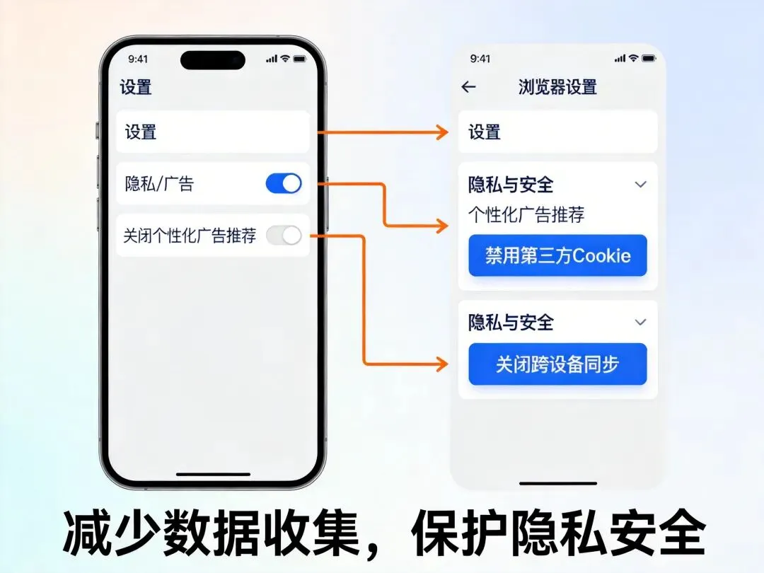 浏览器设置里,禁用第三方Cookie,并关闭平台跨设备同步功能。
