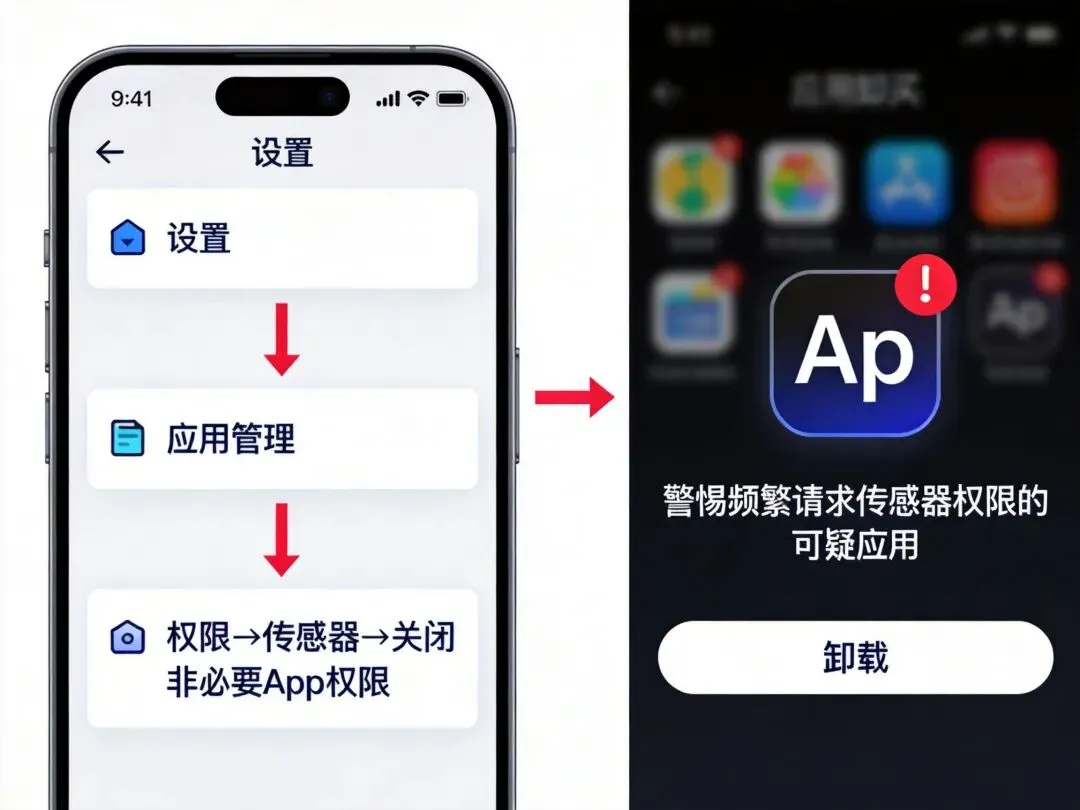 针对侧信道攻击,目前最新的手机系统已经在限制后台传感器访问。建议做法:检查你安装的所有App,卸载那些功能模糊、不需要传感器权限却频繁请求的应用。