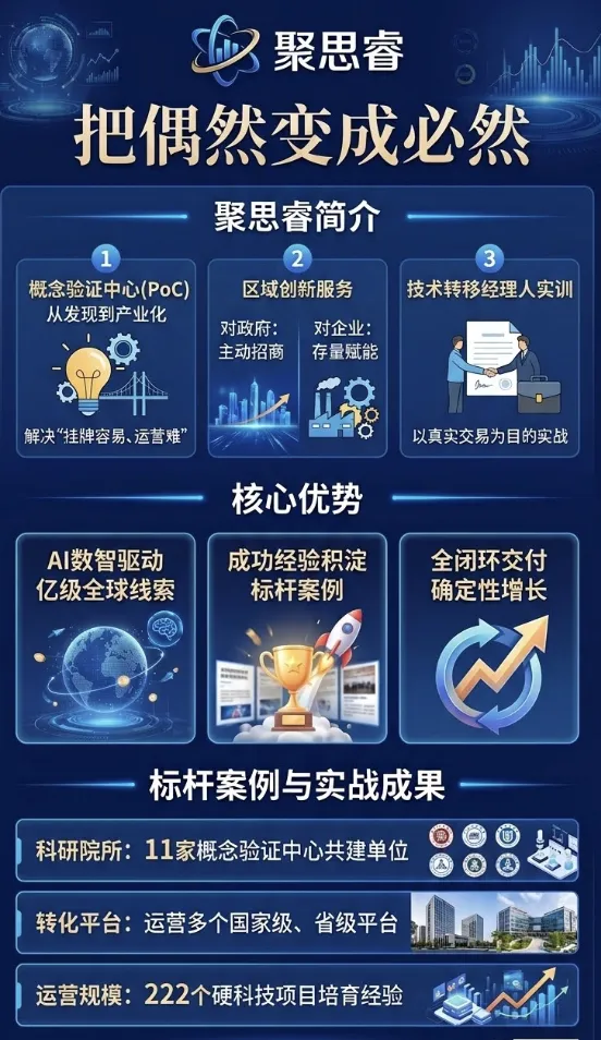 1. 多维资产诊断:聚思睿专家团队对百项成果进行了覆盖技术先进性、专利布局质量、法律合规风险及市场准入可行性的全生命周期扫描。