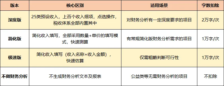 按需求选择财务分析版本: