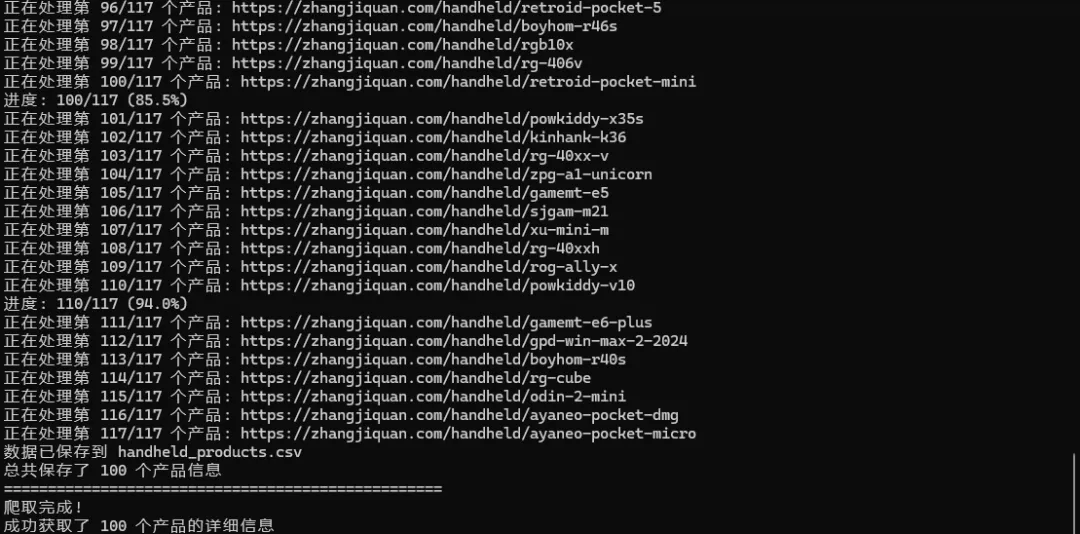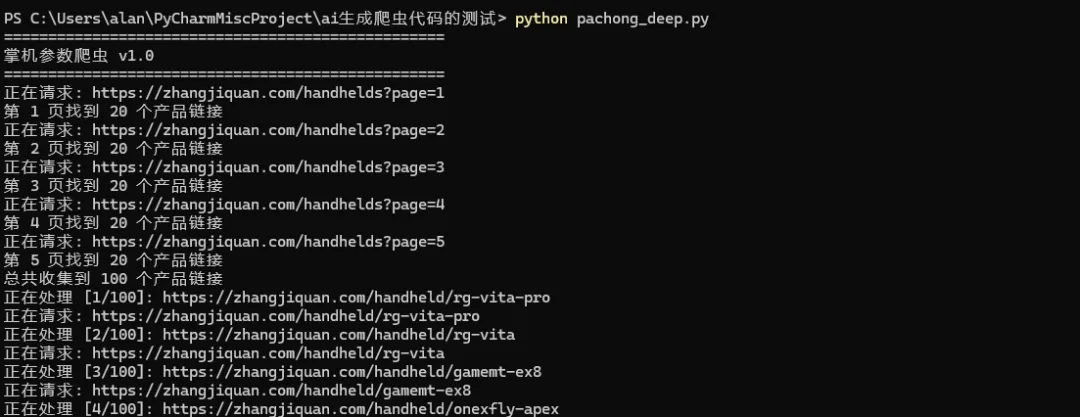 deepseek:爬取列表页产品链接准确,全程无报错。