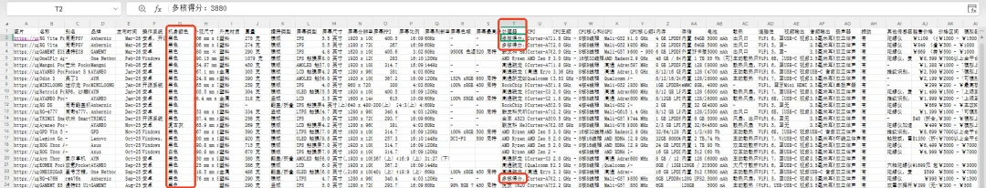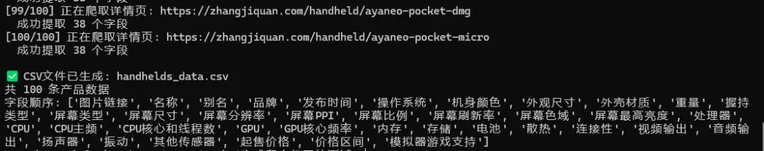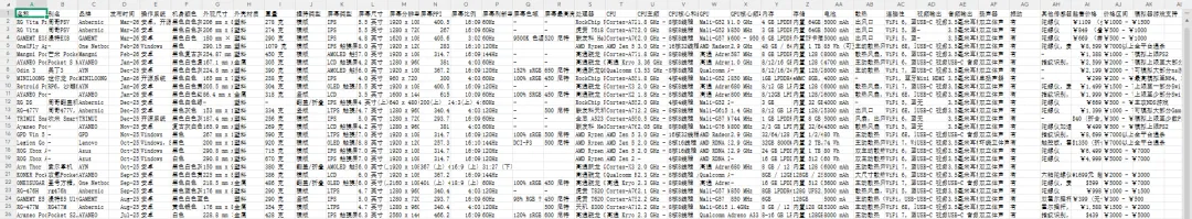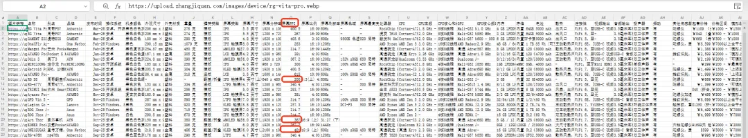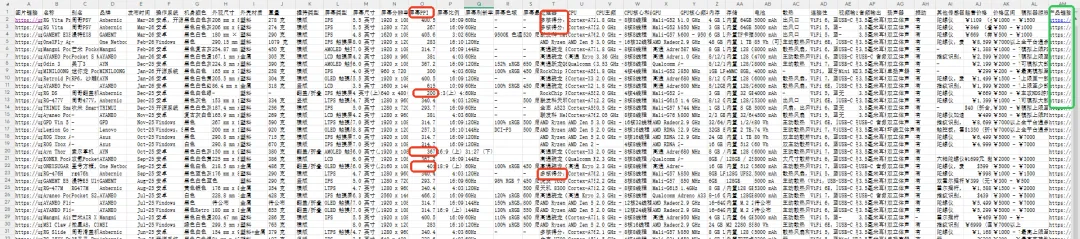 csv表格检查:数据准确性方面有两列的部分数据不准确,是处理器列抓错了值,当处理器行有【处理器型号】和【多核得分】时取了【多核得分】,没有按照需求实现代码,属于bug,扣20分。屏幕PPI列如果是双屏掌机只取了上屏的数据,没有下屏数据,需求中没有明确抓取方法,其代码bug导致数据不可用,扣10分。有正确的图片链接,可打开,最后还多了一列产品链接,点击可直接跳转到对应产品详情页,比较方便,加2分,看来是比别家AI有更多的思考的。