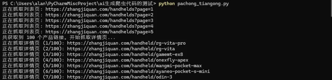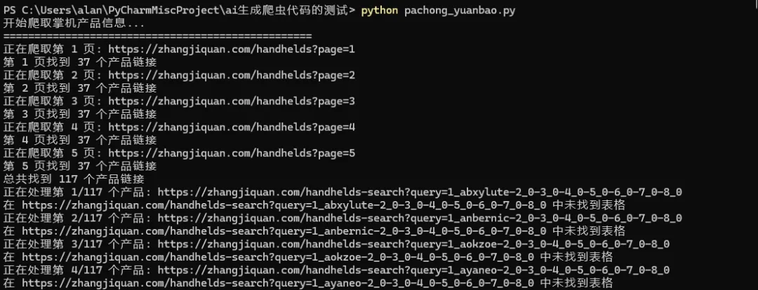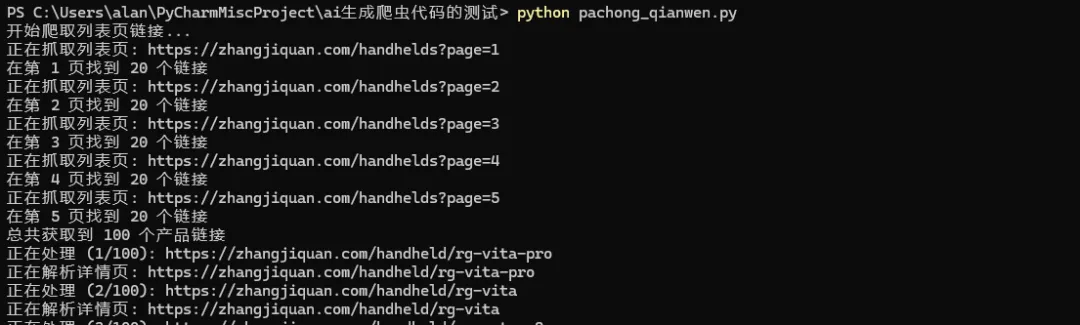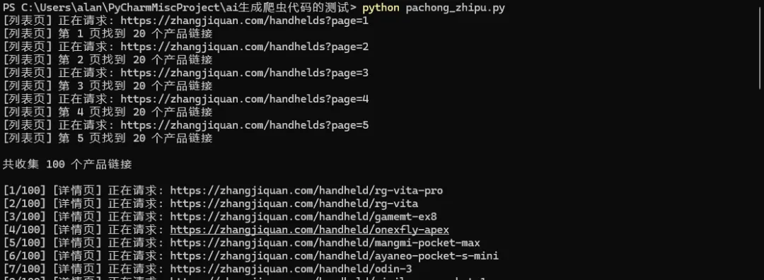智谱清言:爬取列表页产品链接准确,全程无报错。