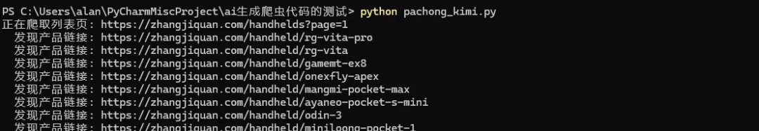 Kimi:爬取列表页产品链接准确,全程无报错。