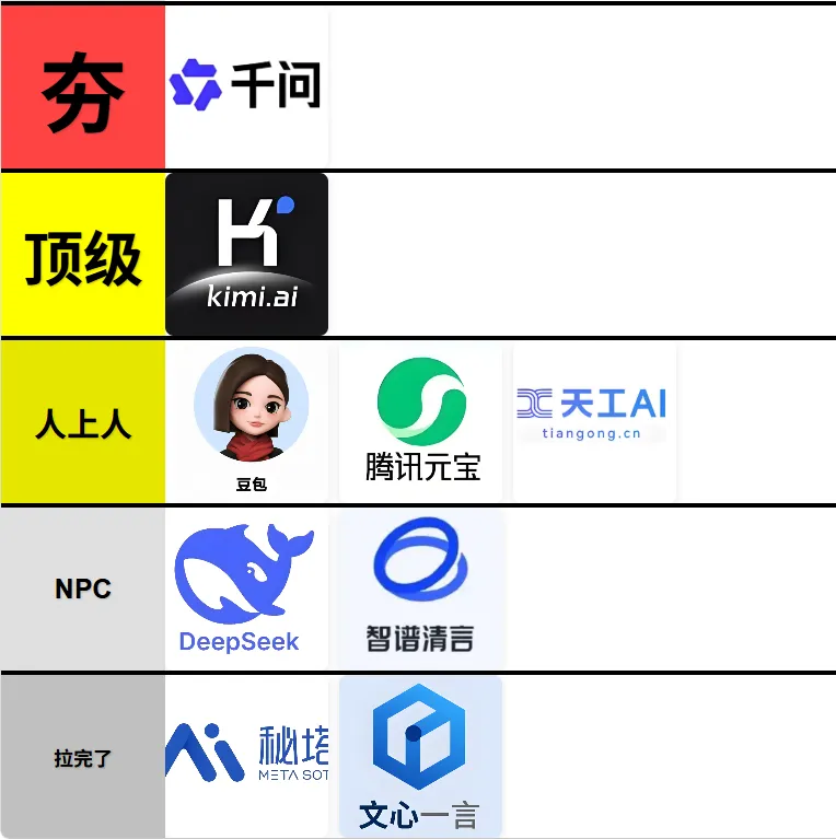 统一需求测 AI:各家 AI 表现排行,从夯到拉
