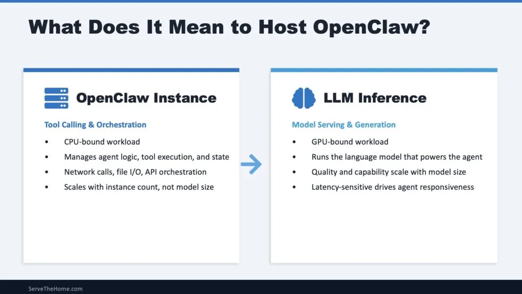 OpenClaw并不是一个简单的应用,而是由两类完全不同的计算负载组成。这种架构分离,是所有部署决策的基础。