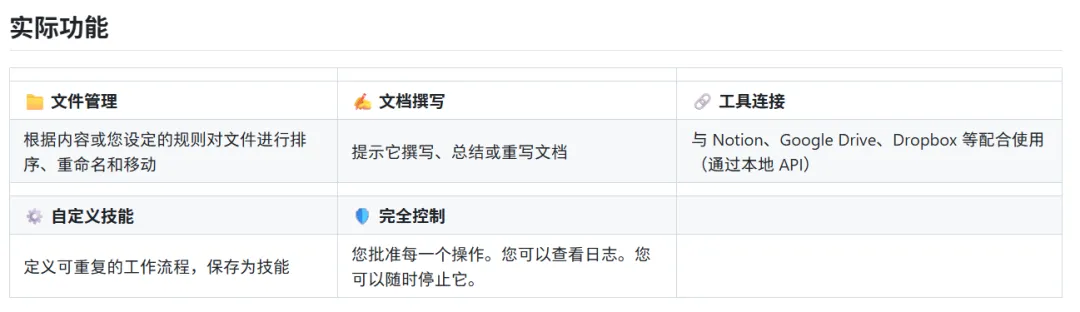 它不会自作主张乱动你的文件。每次操作前都会先告诉你它要做什么,你点了”同意”它才执行。你可以随时查看操作日志,随时叫停。