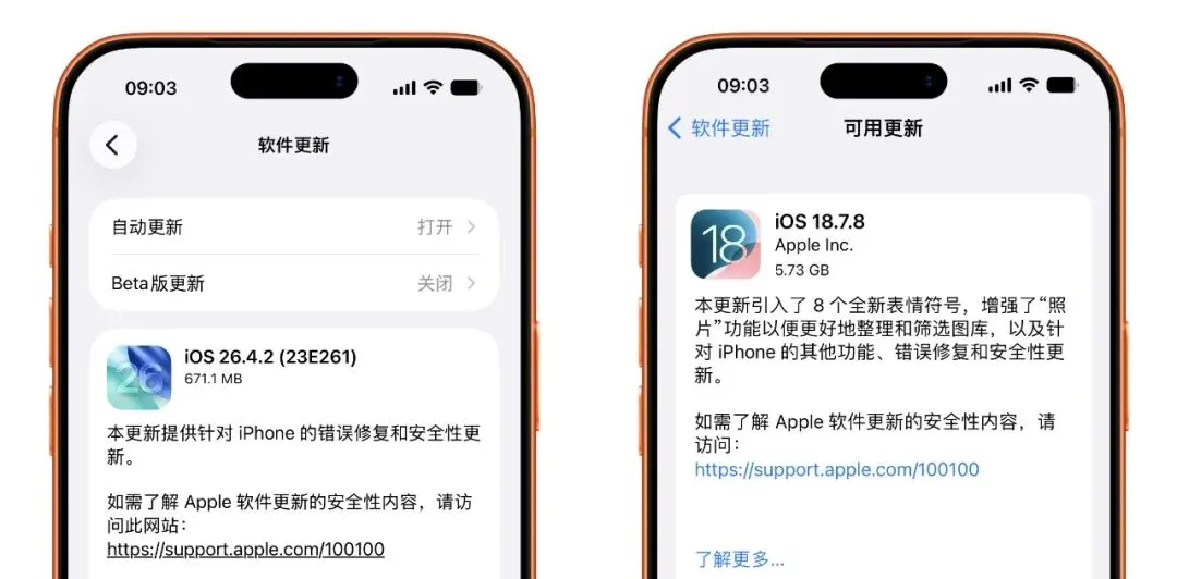 苹果发布了 iOS 26.4.2 / iOS 18.7.8 正式版