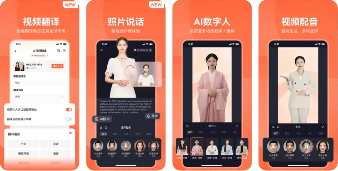 另外还有文案翻译、视频翻译、照片说话、数字人直播等AI功能,一分钟帮你完成AI数字人口播视频,解放生产力!