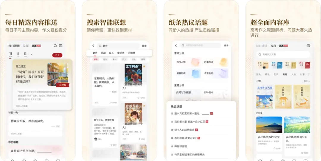 好词好句、经典人物、央媒模板、高分写作技法、高考&中考范文……