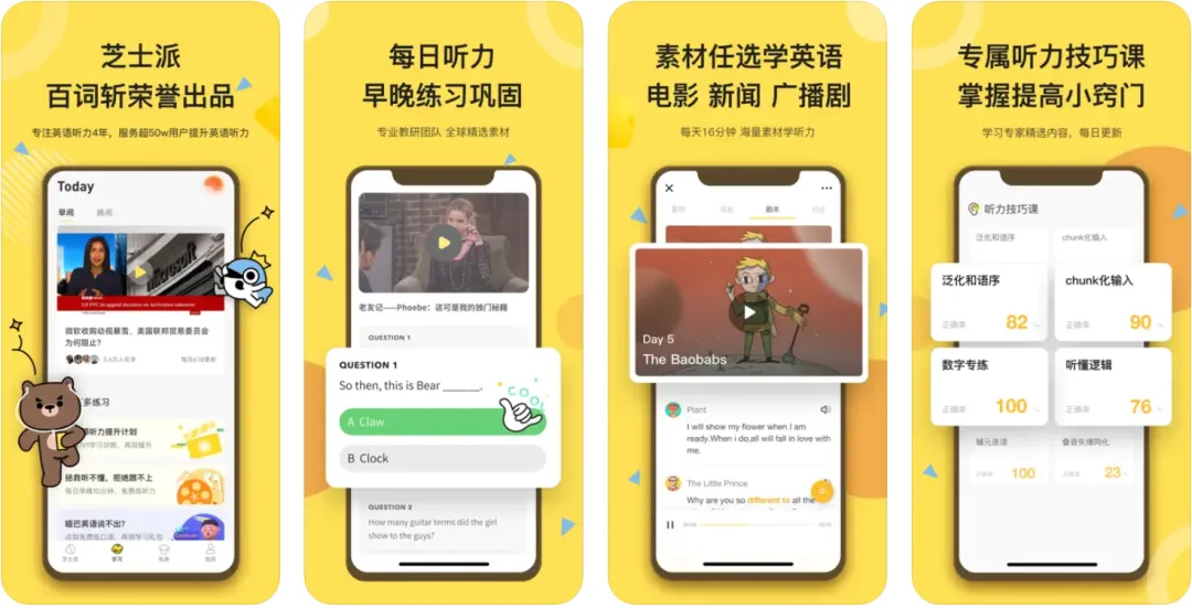 而且搞学习它真有一套,测英语等级-循序渐进推荐听力材料-无字幕盲听-有字幕精听-做题检验,学起来真的轻松又高效~