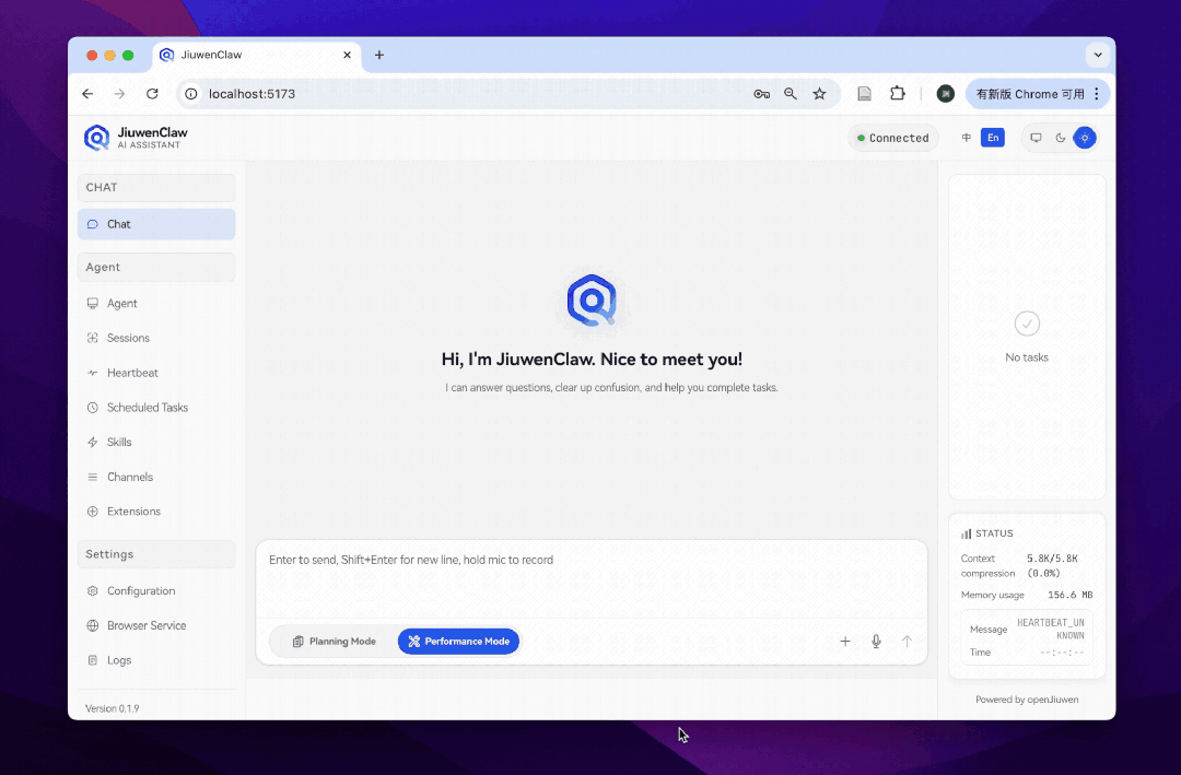 这一过程验证了 SciGraph 在 JiuwenClaw 生态中已具备支撑“发现—路由—部署”完整链路的能力,演示了大规模科学图谱已能够以标准化 Skill 的形态,无缝嵌入智能体的原生运行环境。