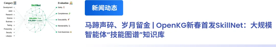 此外,结合OpenClaw和SkillNet的实践,将标准化的图谱工具升级为AI原生可调用的知识技能单元,使得分散的图谱不再是孤立的脚本,而是根据逻辑依赖关系连接而成的知识技能网络,从而能最终构建起AI原生的知识服务系统。