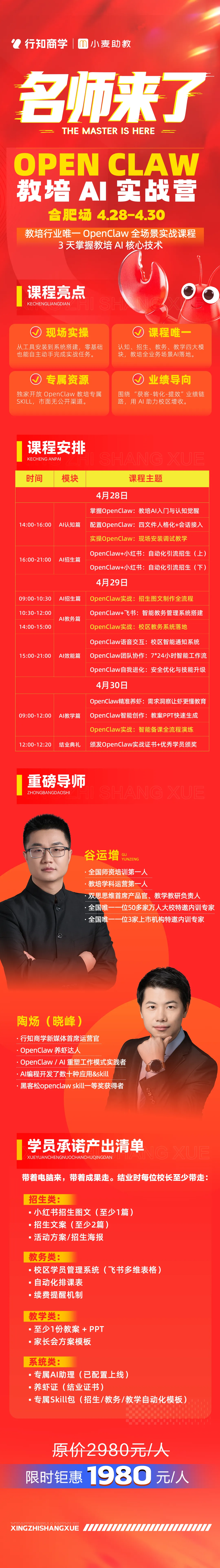 :OpenClaw 实战招生图文制作,教你用 AI 快速生成高质量招生海报、文案。 - 10:30-12:00 AI 教务篇