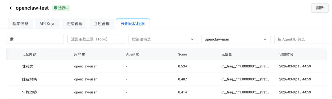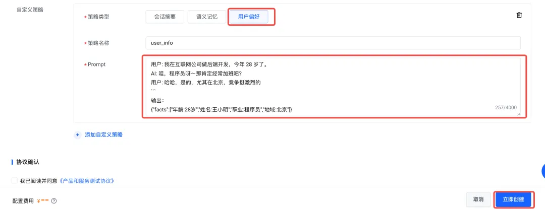 打开火山mem0的控制台,通过长期记忆检索即可看到记忆已经生成。提取别的记忆,修改记忆项目中策略的prompt即可。