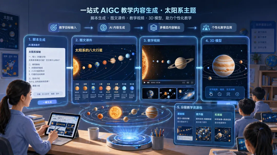 教育行业有一个长期痛点:优质教学内容的生产成本太高,一份包含知识点讲稿、可视化插图、视频的完整课件,传统方式需要教师数天投入。当”个性化教学”从口号变成刚需,同一个知识点面向不同学情的班级需要差异化内容,生产瓶颈就成了最大的拦路虎。