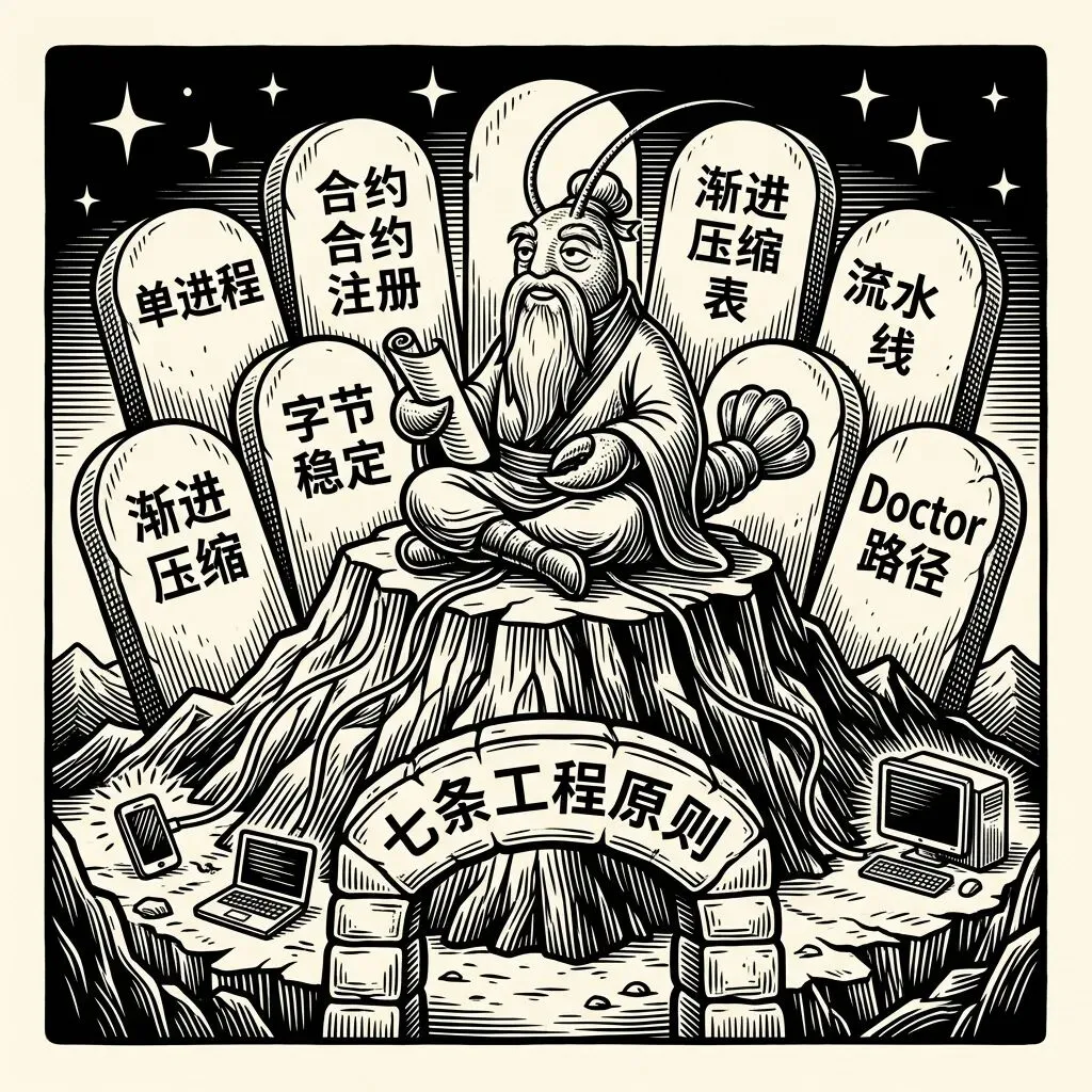 第 11 章是全书最精彩的一章——系统提示词的字节级稳定设计。为了最大化 AI API 的 KV Cache 命中(也就是省钱、省时间),系统提示被分成“稳定前缀”和“动态后缀”两部分,中间用 HTML 注释做分界。三个归一化层确保内容在字节级别完全确定:换行符统一、尾部空格清除、能力 ID 按字母排序。这意味着同一会话的连续两轮对话之间,前缀部分逐字节相同,AI 服务商的缓存能完美命中。